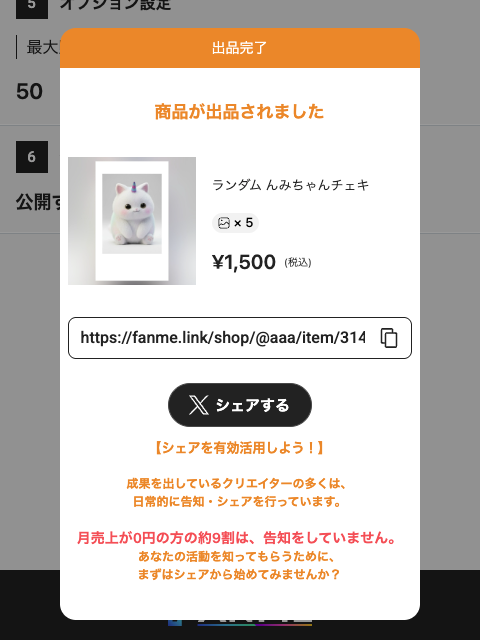 公開後、商品URLが発行されます。