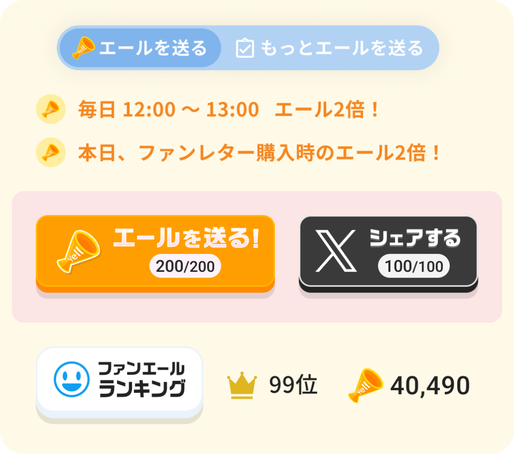 デジタルファンレターを購入すると、獲得エールが2倍になります。