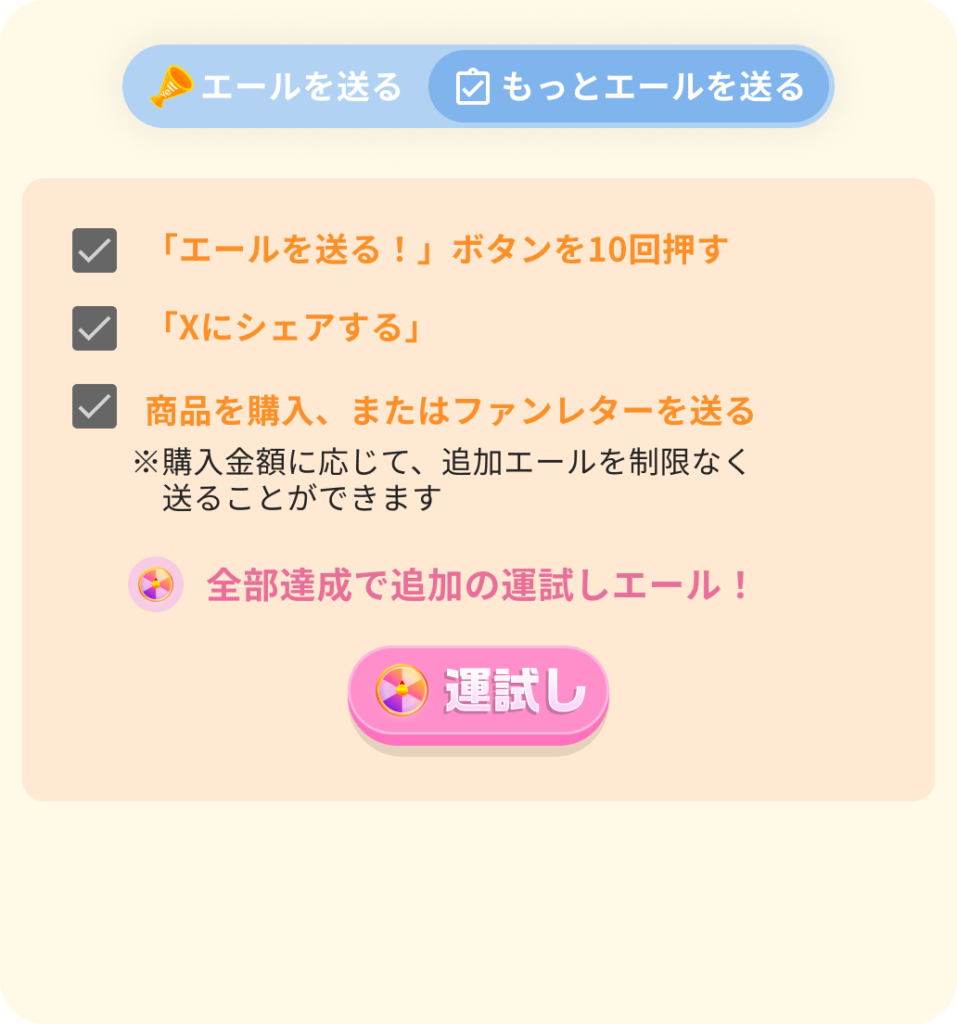 - 追加で応援できる「もっとエールを送る」