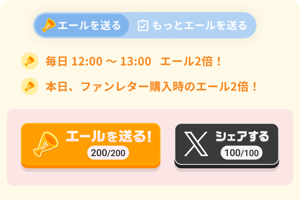 - 内容:この時間に送られたエールは 2倍換算