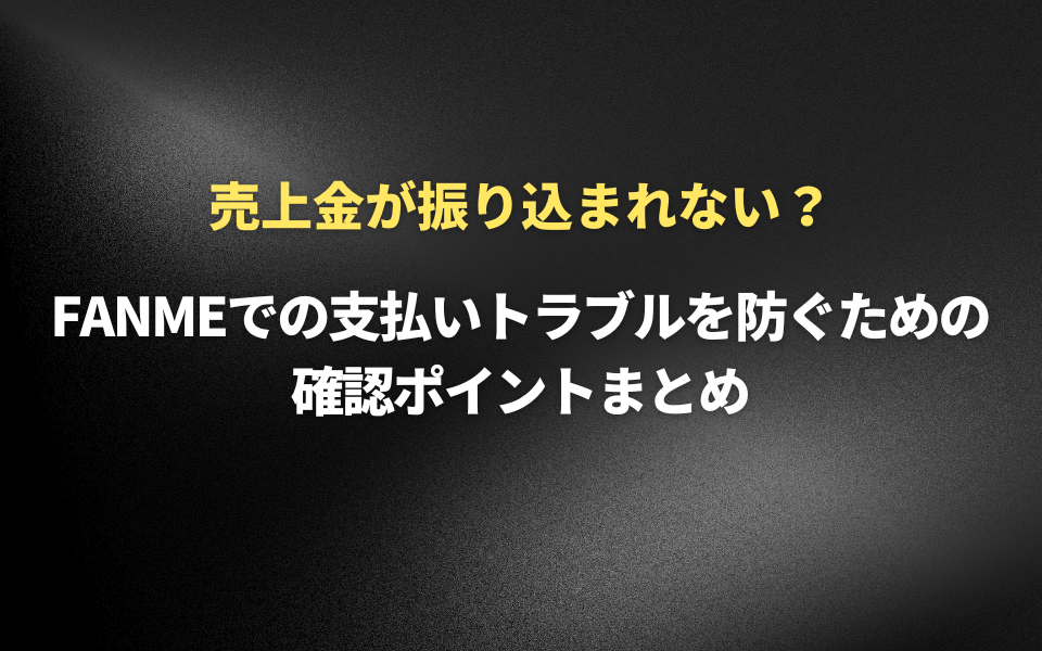 売上金が振り込まれない?FANMEでの支払いトラブルを防ぐための確認ポイントまとめFANMEでグッズ販売やコンテンツ販売を行うと、売上金があなたの口座に振り込まれます。しかし、実際には「振り込みができなかった」というお問い合わせが多く寄せられて...